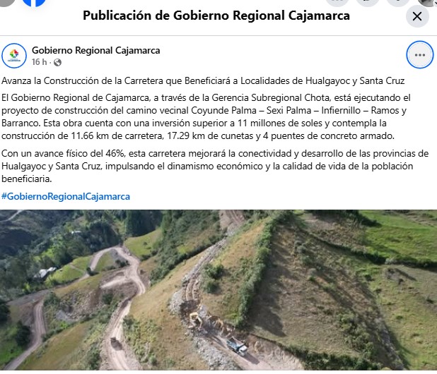 Con un avance físico del 46%, esta carretera mejorará la conectividad y desarrollo de las provincias de Hualgayoc y Santa Cruz, impulsando el dinamismo económico y la calidad de vida de la población beneficiaria.
