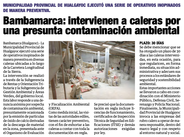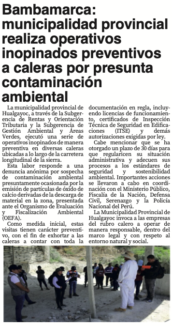 Bambamarca: municipalidad provincial realiza operativos inopinados preventivos a caleras por presunta contaminación ambiental