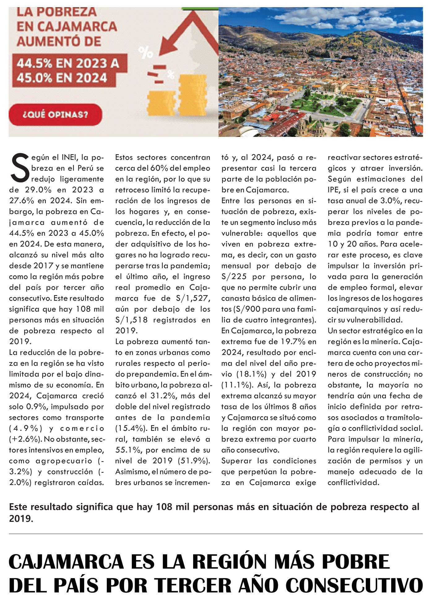 Cajamarca es la región más pobre del país por tercer año consecutivoBy Monitoreo Medios / agosto 1, 2025