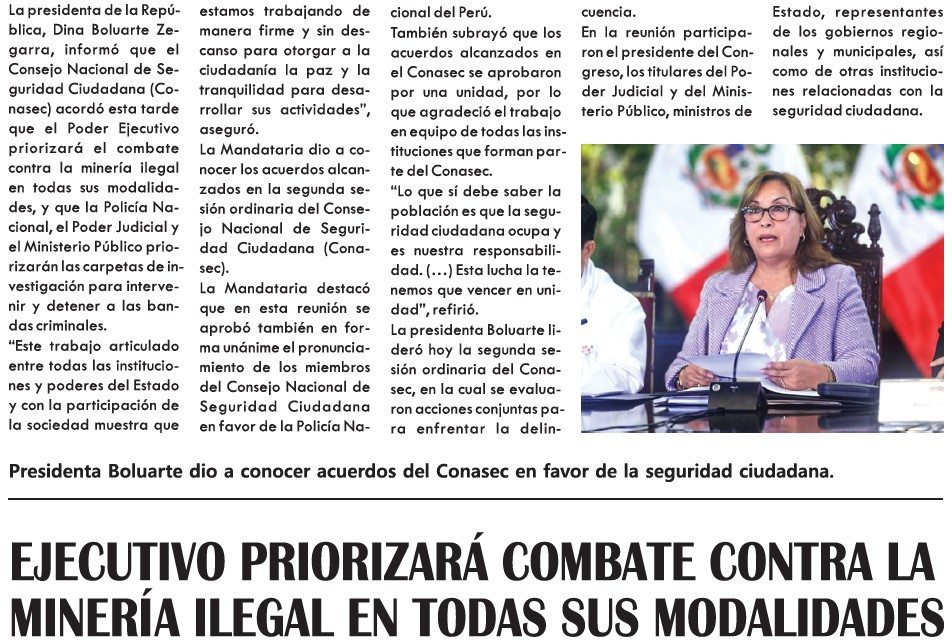 Ejecutivo priorizará combate contra la minería ilegal en todas sus modalidades