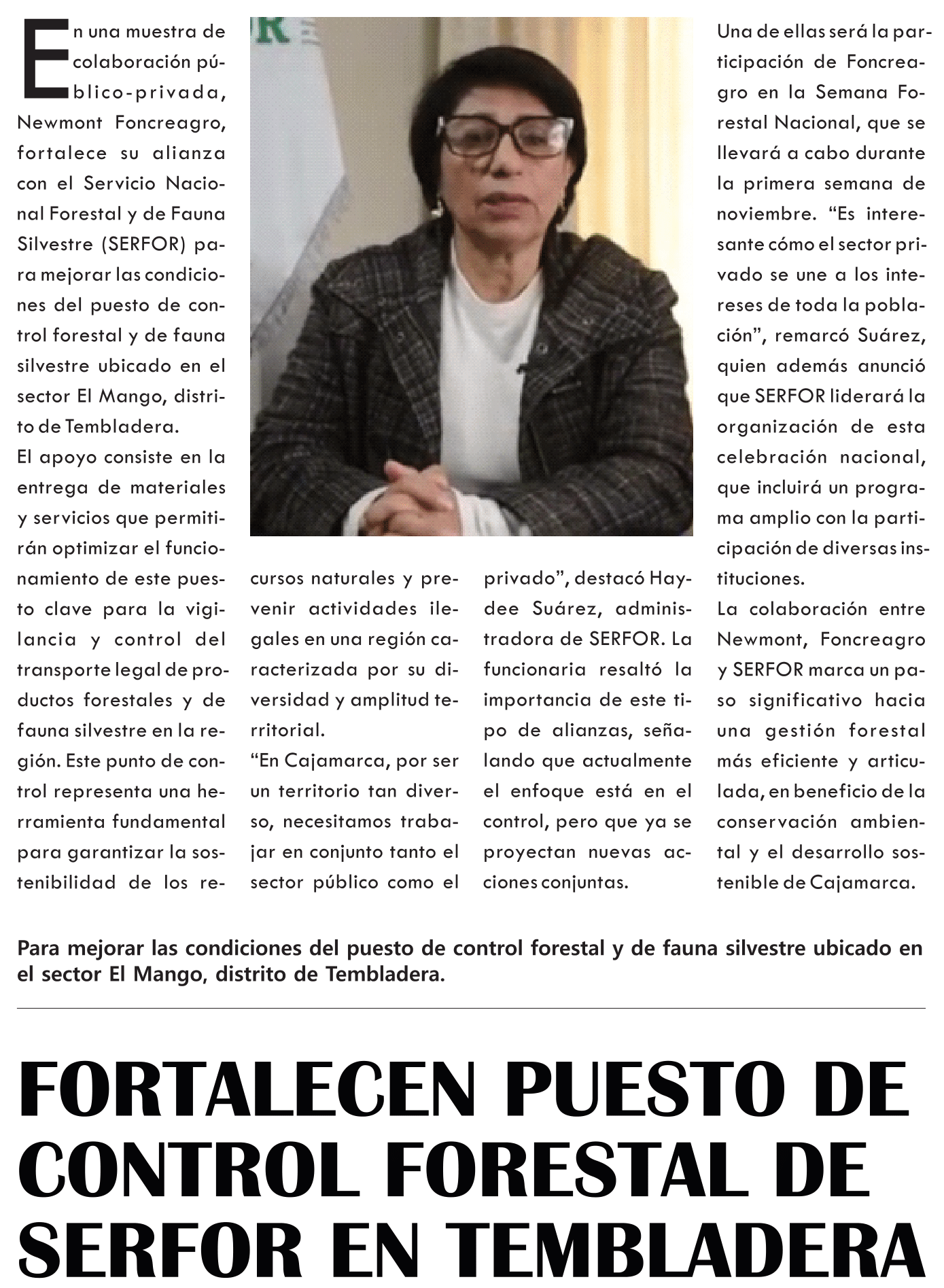 Fortalecen puesto de control forestal de SERFOR – TembladeraBy Monitoreo Medios / octubre 1, 2025 Fuente: El Clarín - Pág. 4Fecha: 1 octubre, 2025
