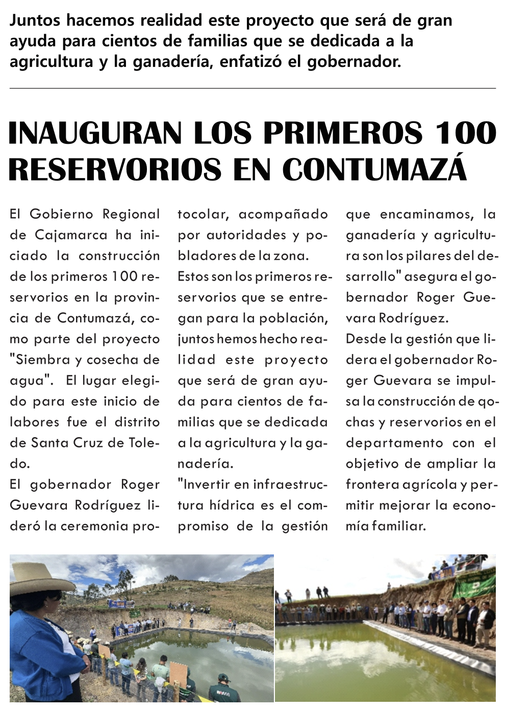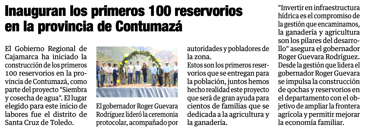 Inauguran los primeros 100 reservorios en Contumazá