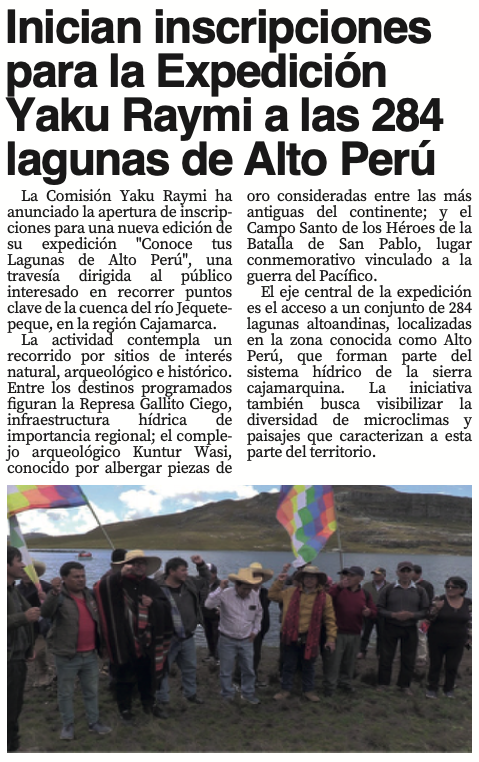 Inician inscripciones para la expedición Yaku Raymi a las 284 lagunas de Alto Perú