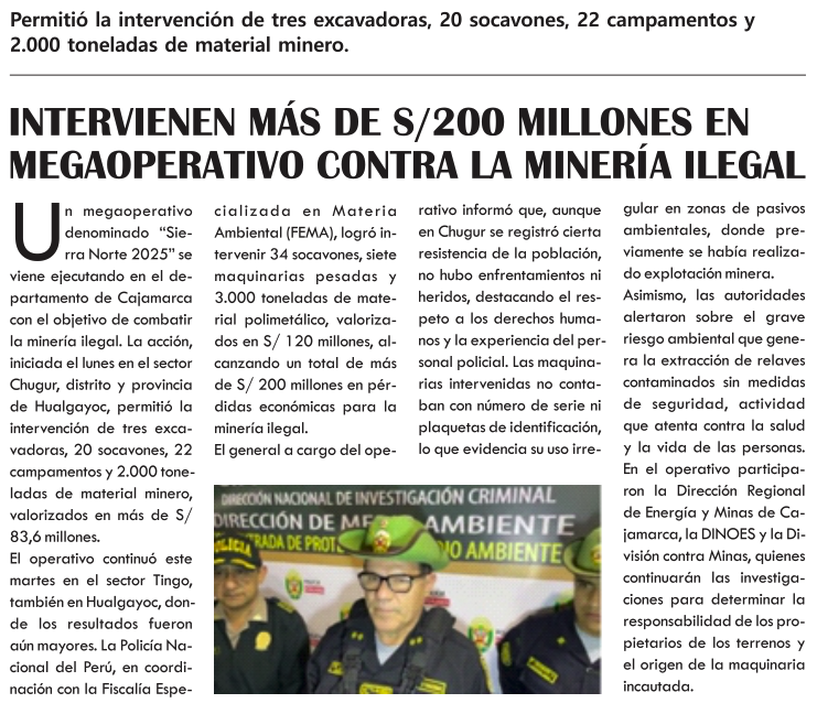 Intervienen más de S/200 millones en megaoperativo contra la minería ilegalBy Monitoreo Medios / octubre 23, 2025