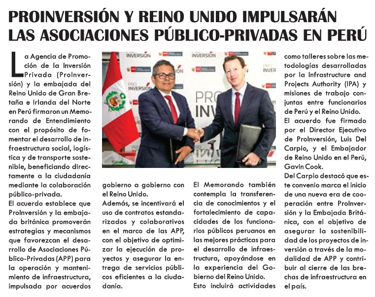 Proinversión y Reino Unido impulsarán las asociaciones público – privadas en Perú