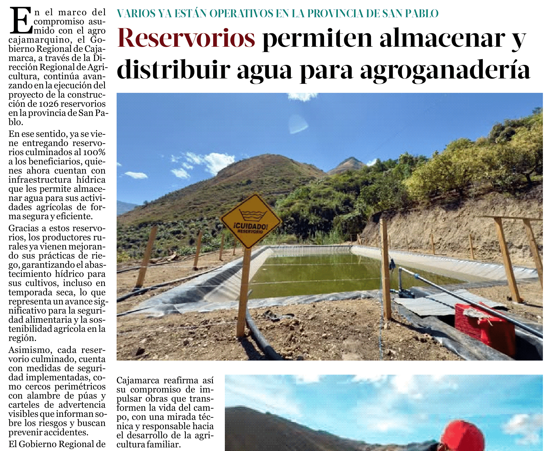Reservorios permiten almacenar y distribuir agua para agroganaderíaBy Monitoreo Medios / julio 16, 2025