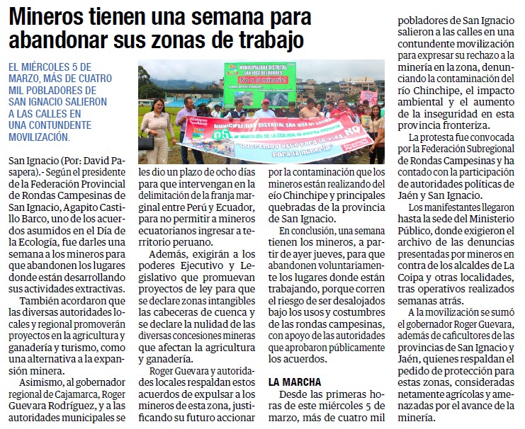 FUENTE: El Clarín – Pág. 5 / Panorama Cajamarquino – Pág. 12