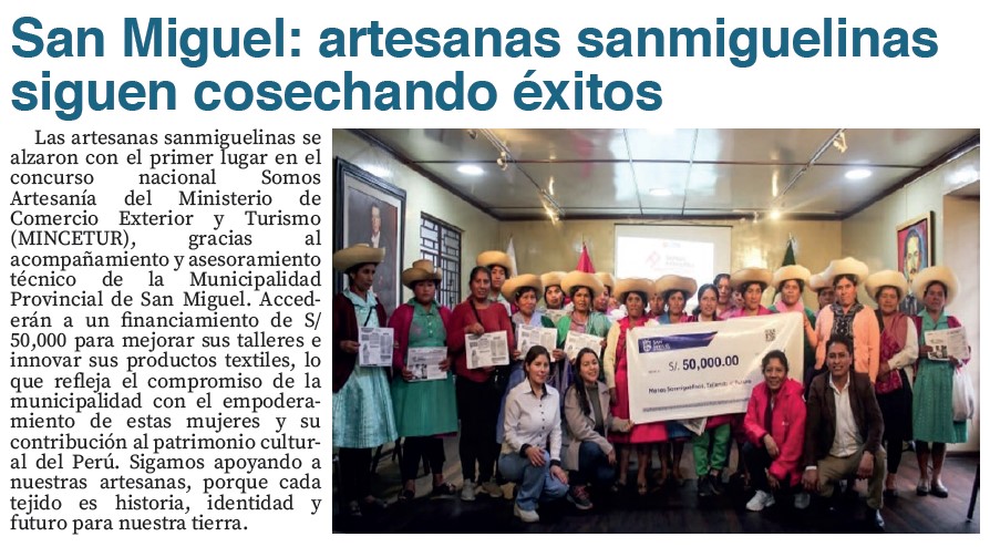 San Miguel: artesanas sanmiguelinas siguen cosechando éxitosBy Monitoreo Medios / agosto 27, 2025 Fuente: El Nuevo Diario - Pág. 6Fecha: 27 agosto, 2025