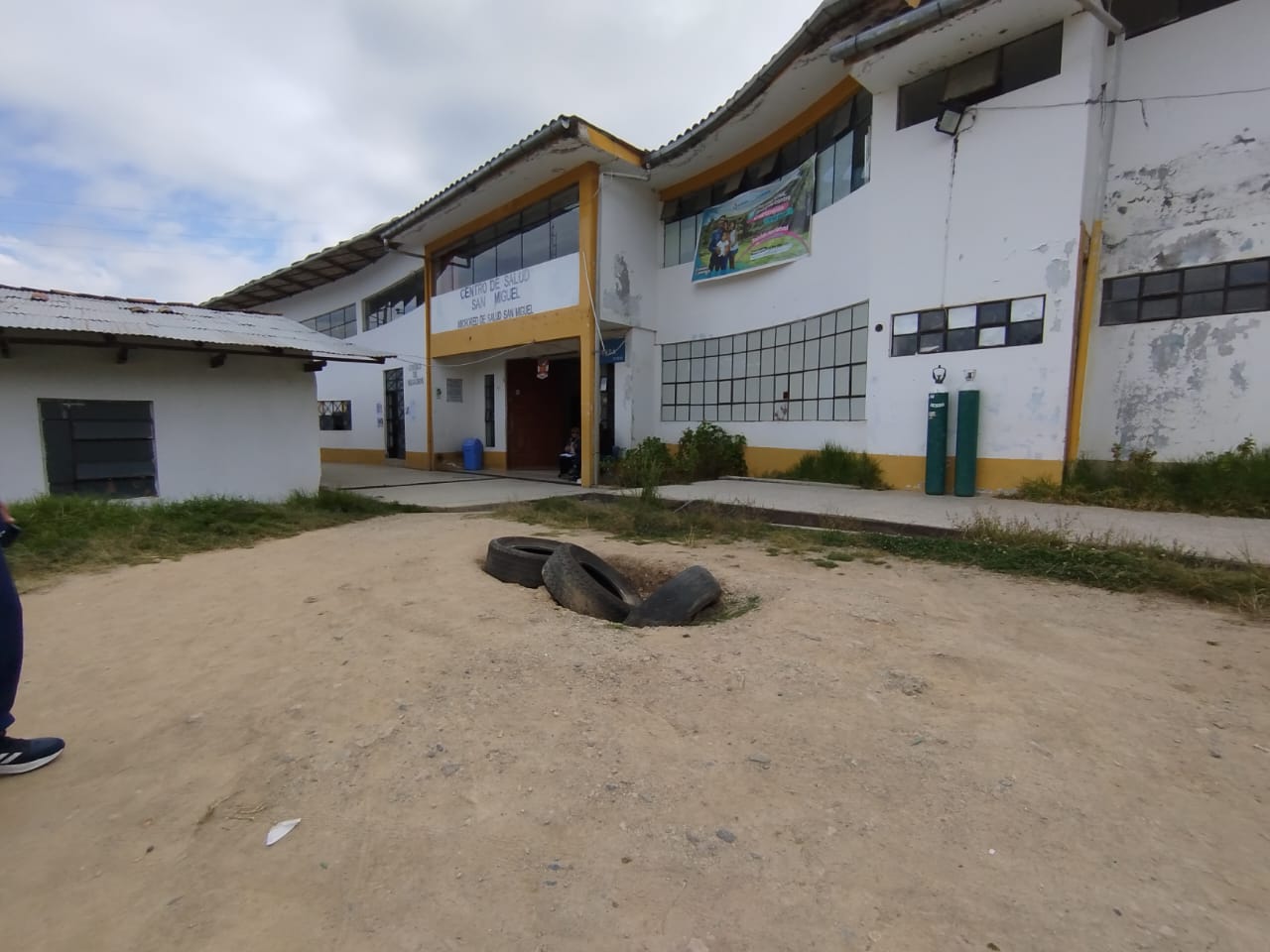 Trabajadores del Centro de Salud de San Miguel, provincia de San Miguel, Cajamarca, denuncian que las excavaciones realizadas por maquinaria de la municipalidad para extraer muestras de suelo para los estudios de geotecnia y resistencia referente al proyecto de la construcción del nuevo local, no fueron tapadas debidamente, lo que viene ocasionando que las unidades móviles que llegan con pacientes se hundan con alguna de las llantas, son tres puntos en donde se realizaron excavación para toma de muestra, indican. Solicitan que la municipalidad coloque material de afirmado y sea bien compactado. Momentáneamente los trabajadores han colocado llantas viejas para poder alertar a los conductores.
